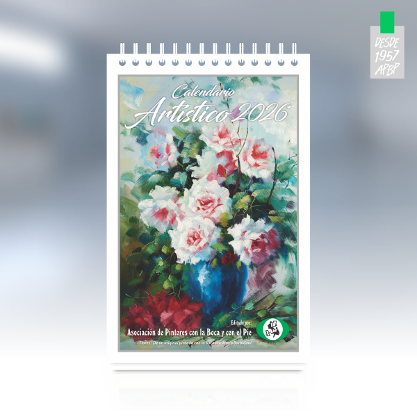 Calendario Artístico Institucional: Magnífico calendario de diseño Europeo, que contiene 13 reproducciones de obras de artistas con la boca y con el pie. Su diseño es vertical y mes a mes tiene escritas frases alusivas al desarrollo humano, en el respaldo de cada mes incluye un maravilloso calendario lunar. En su última página contiene el calendario posterior al del actual. El troquelado que lleva su base hecho en cartón resistente, permite que sea utilizado en el escritorio o colgado en la pared. Actualmente tiene presentación anillado. Se le ha agregado en su parte posterior una impresión para tomar notas día a día.